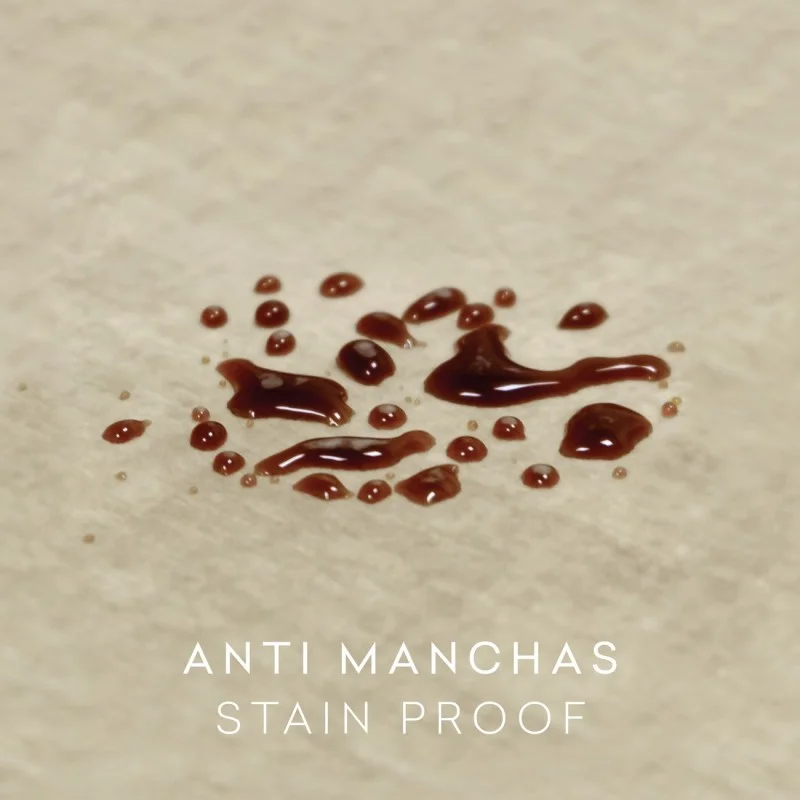 - En caso de derrame, retira el exceso de líquido rápidamente con un paño limpio, y luego procede a limpieza. Al tener el tejido repelente, la mancha no habrá penetrado tanto.